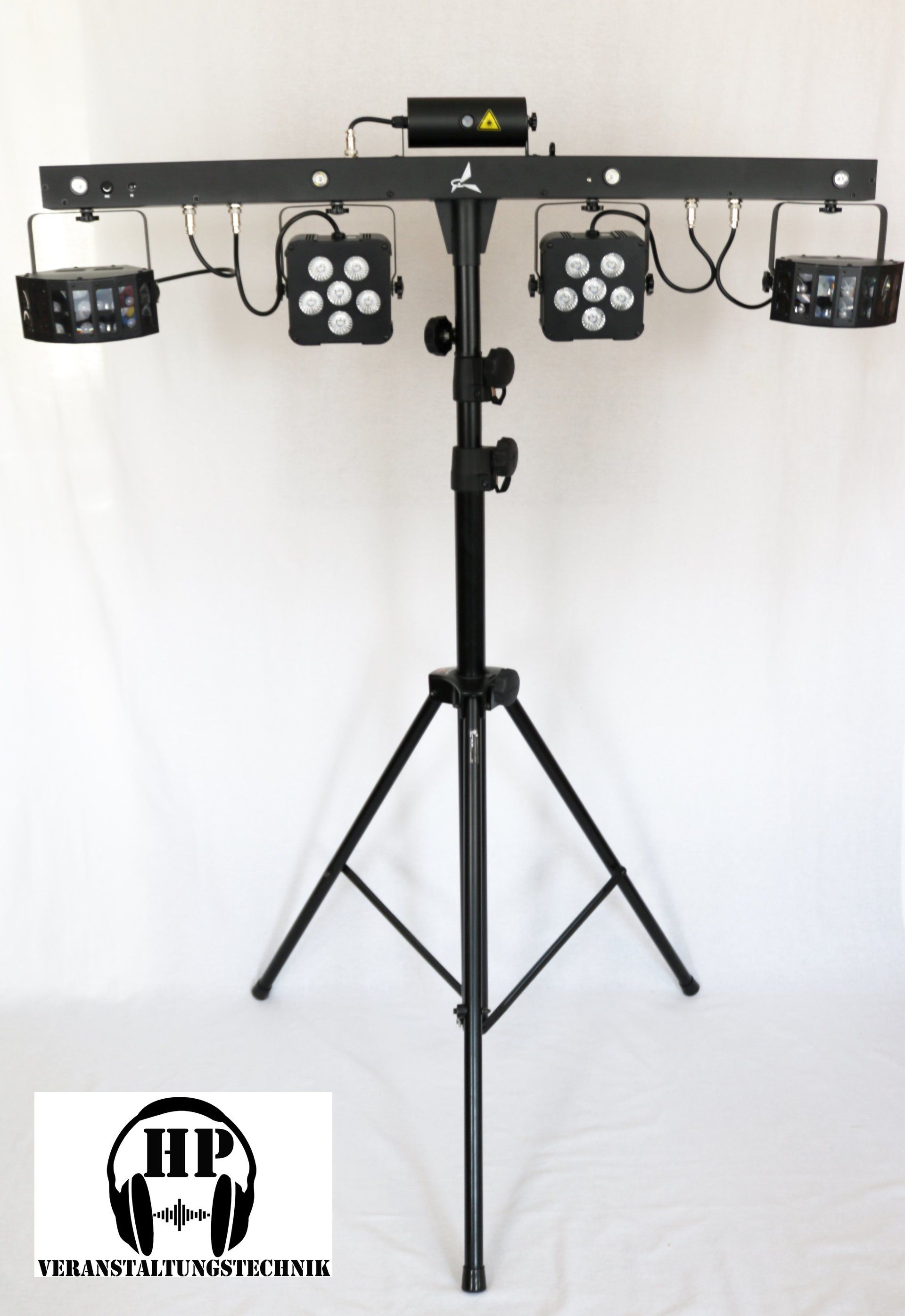 Schnell aufgebaut und mit super abgestimmten Automatikprogrammen direkt einsatzbereit. Hier ist pures Diskofeeling angesagt. Die Lichterbar besteht aus 1x Laser, 2x LED-Derbys, 2x LED-Spots und 4x Strobe-LEDs. Natürlich DMX fähig.